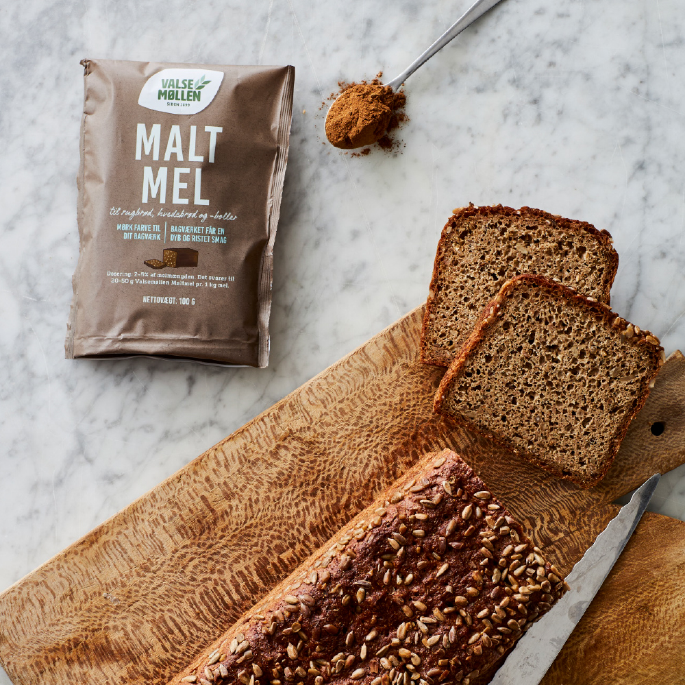 Maltmel er et bagehjælpemiddel, der giver dit bagværk en mørkere, mere gylden farve og en dyb, let ristet smag. Det bruges til både rugbrød, hvedebrød og knækbrød, når du ønsker mere karakter og et mere indbydende udtryk.