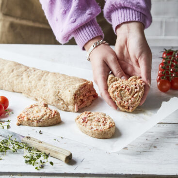 Bag et lækkert og familievenligt hvedebrød med Frederik Haun. Frederik Haun har udviklet en opskrift på et fyldigt hjertebrød med vores nye Valsemøllen ØKO Dansk Stenformalet Hvedemel, med 20% fuldkorn. Derudover er brødet fyldt med Valsemøllen ØKO Danske Havregryn samt sprøde frø og kerner og et smukt, flettet hjerte på toppen, som laves med pastafarve eller rødbedesaft.