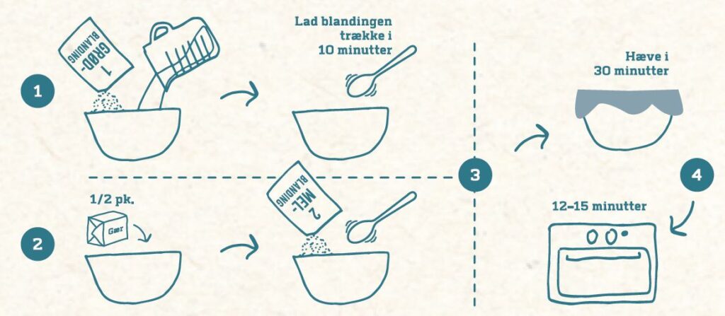 - Dæk skålen til, og lad dejen hæve i 30 minutter.