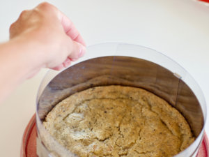 - Pres dejen ud i en springform (20 cm i diameter) beklædt med bagepapir i bunden.