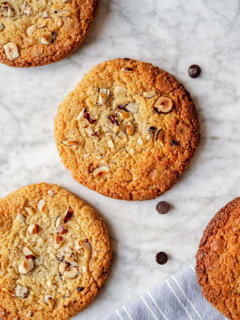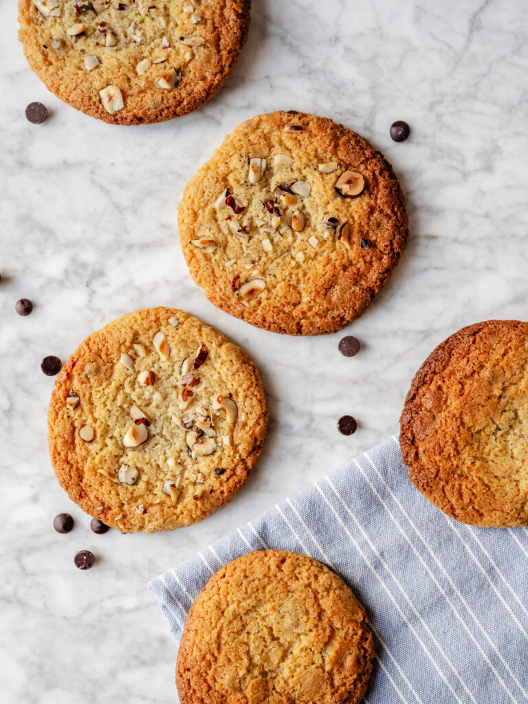 - Bag midt i en forvarmet ovn ved 180°C varmluft i 10-12 minutter. Lad dem køle helt af, så de går fra bløde til sprøde i kanten.