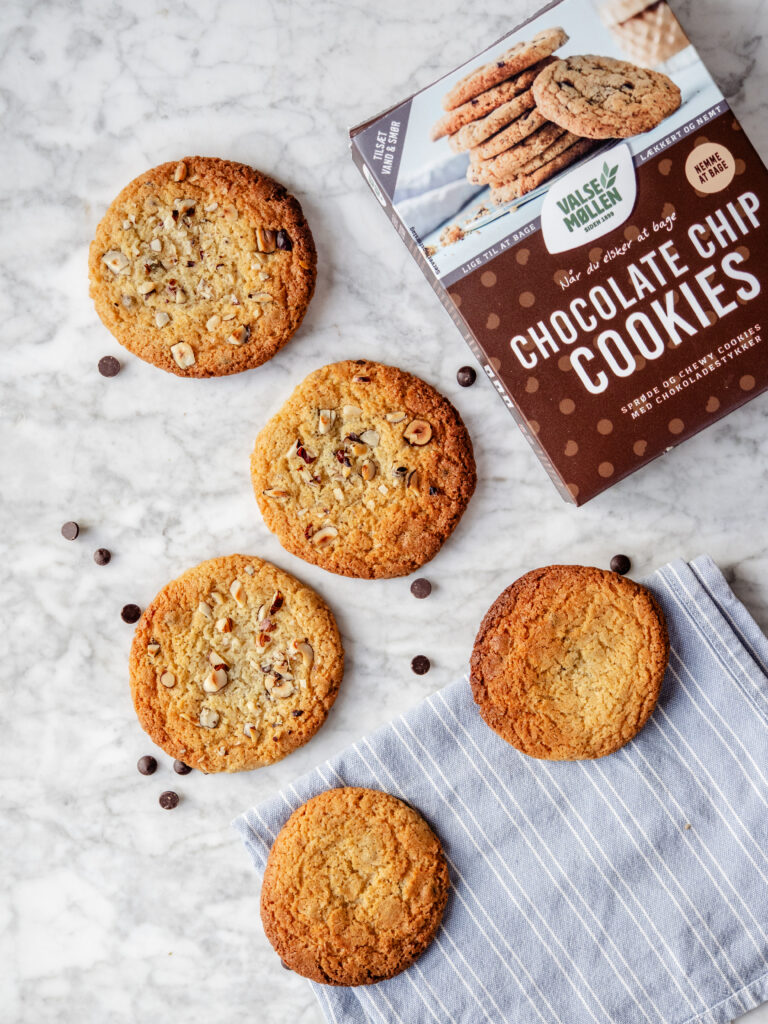 Tip: Frys dejen i kugler, og bag friske cookies, lige når du har lyst. Bag direkte fra frost for lidt tykkere cookies – eller tø i 15 minutter for fladere. Pift dem op med flagesalt, ekstra chokolade eller hakkede nødder før bagning.