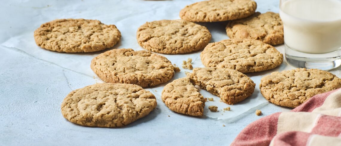 - Bag midt i en forvarmet ovn ved 180°C varmluft i 10-12 minutter. Lad dem køle helt af, så de går fra bløde til sprøde i kanten.