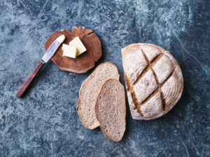 Et godt tip: Brug hævekurv, og få ekstra rustikke brød. Drys hævekurven med mel, og lad brødet hæve i ca. 60 minutter tildækket ved stuetemperatur. Vend brødet ud af hævekurven på en bageplade med bagepapir, og bag på midterste rille i en forvarmet ovn ved 220°C (varmluft 200°C) i ca. 25-30 minutter.