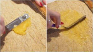 - Smør herefter et tyndt lag lakridscreme ud over lemoncurden.