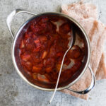 - Kom alle ingredienserne i en gryde, og kog op på middel-høj varme i ca. 5-10 minutter til rabarberne er møre og alle ingredienserne har samlet sig. Rør undervejs.