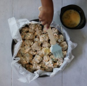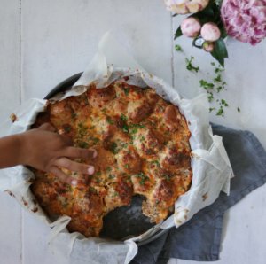 Madblogger Maria Vestergaard har haft sin datter med i køkkenet og bagt dette lækre madbrød fyldt med cremet ost og urter for at give brødet en lækker smag og konsistens. Brødet er bagt på Valsemøllen Økologisk Dansk Hvedemel og Valsemøllen Økologisk Manitoba for at gøre det ekstra luftigt. Monkey bread betegner et brød, hvor det samles i kugler og bages ind i hinanden. Giv dig i kast med Marias version eller tilsæt de krydderier, urter eller ost, som du bedst kan lide.