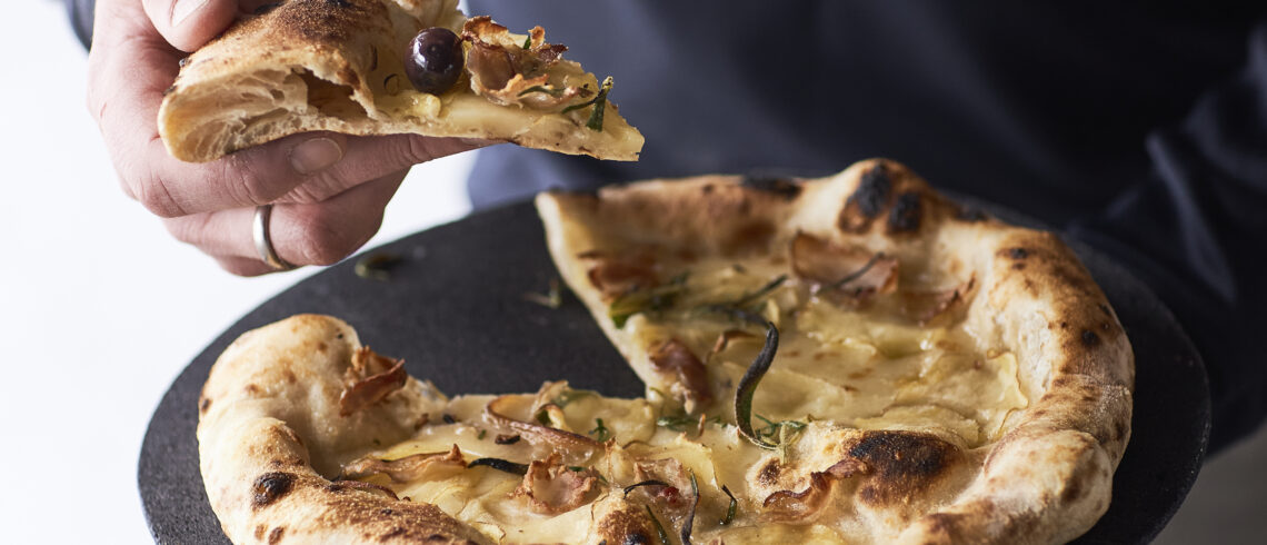 - Nº 6 PANCHETTA: Fior di latte (eller anden mozzarella), kartoffel, panchetta og rosmarin, toppet med en god olie.