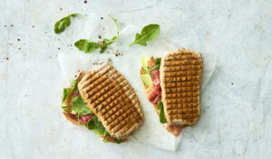 Lav dine sandwichstykker som sprøde panini – fyld dem med ost, skinke eller grønt, og giv dem et par minutter i en paninigrill eller på en grillpande.