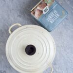 - Sæt din støbejernsgryde ind i ovnen med det samme og lad den varme med. Det er vigtigt at gryden bliver rygende varm – det tager ca. 45 min.