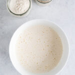 - Pisk sukker og vaniljesukker hvidt med æg.