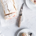 - Vend den færdigbagte bund over på et nyt stykke bagepapir med oversiden nedad.