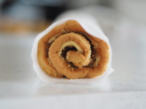 - Pak rouladen ud og smør overpladen med lidt vaniljecreme.