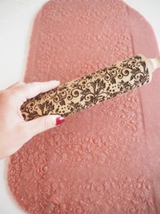 - Udrul marcipan i 6 mm tykkelse, og rul efter med en kagerulle med effekt.