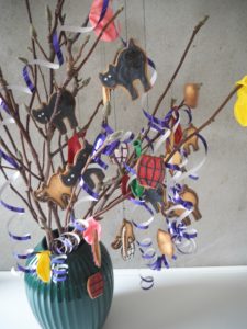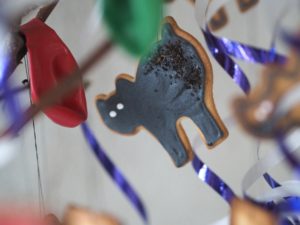 - Så snart de kommer ud af ovnen prikkes et lille hul i hver småkage med en skrap kniv, så en tråd senere kan føres igennem dem.